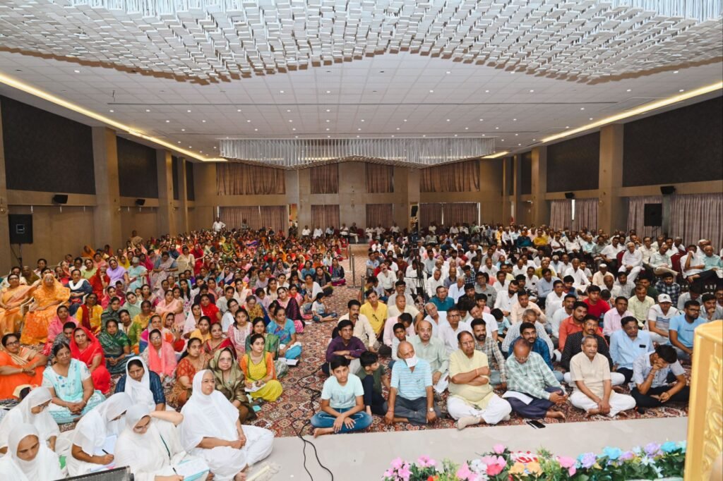 “जीवन जगण्याची जडीबुटी” या विषयावर प्रवचन करतांना गुरुदेवांनी पाच गोष्टी सांगितल्या १)आपल्या स्वभावावर जागृत मन सेट करा-