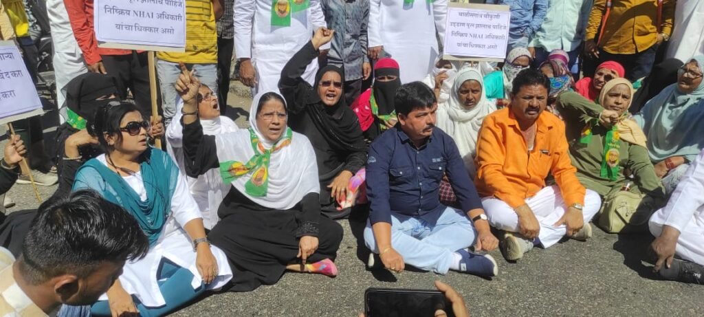 सर्वच सर्व्हिस रोडची दुरावस्था झालेली असुन त्या संपुर्ण परिसरामध्ये पथदिवे लावण्यात आलेले नाही. शहरी भागात पथदिवे नसल्याकारणाने रात्रीच्या अंधाराचा फायदा घेत चोर, दरोडेखोर यांच्या सारख्या घातक विकृतींनी दोन लोकांचा खुन करून त्यांच्या कडील ऐवज, रक्कम, सोने-नाणे लुटुन नेण्याच्या घटना घडल्या आहेत. याच्या तक्रारी करून देखील याबाबत संबंधितांनी गंभीर दखल घेतली नाही. ज्या ठिकाणी पावसाळ्याच्या व सांडपाण्याचा निचरा होण्यासाठी गटारी करणे आवश्यक होते मात्र त्याठिकाणी गटारी करण्यात आलेल्या नाही. यामुळे तेथील रहिवासीयांच्या घरात व व्यावसायिकांच्या दुकानात पाणी घुसते व नुकसान होते याची देखील तक्रार आमदार कार्यालयाकडून व नागरिकांकडून करण्यात आलेली होती त्यावरही अदयाप कुठलीही ठोस कारवाई झालेली नाही. याबाबत भुपृष्ट मंत्रालय व भारतीय राष्ट्रीय राजमार्ग प्राधिकरण यांच्याकडे पत्राद्वारे व ईमेलद्वारे आमच्या कार्यालयामार्फत मागणी करण्यात आलेली आहे. परंतु याची दखल घेण्यात आलेली नाही. त्यामुळे आज दि. ११ फेब्रुवारी रोजी आम्ही या समस्या सोडविण्यासाठी व केंद्रीय भूपु मंत्रालय तसेच NHAI यांच्या निषेधार्थ रस्ता रोको आंदोलन केले आहे तरी याची तत्काळ दखल घेण्यात यावी या रस्ता रोको आंदोलनात मोठ्या प्रमाणात पदाधिकाऱ्यासह मोठ्या प्रमाणात कार्यकर्ते व शहराचे नागरिक उपस्थित होते.आंदोलनात सलीम शाह,भिखन हाजी शाहजिल्हाध्यक्ष नासिर पठाण, शहराध्यक्ष मुक्तार अन्सारी,महिला आघाडी जिल्हाध्यक्ष डॉ.दिपश्री नाईक,नगरसेवक सईद बेग,नगरसेवक गनी डॉलर,नगरसेवक आमिर पठाण,माजी नगरसेवक साबीर सैय्यद,माजी नगरसेवक साजिद साई,रफिक पठाण,प्यारेलाल पिंजारी,इकबाल शाह,शोएब मुल्ला,निजाम सैय्यद,आसिफ शाह मुल्ला,नुरा ठेकेदार,आसिफ शाह,परवेज शाह, निसार अन्सारी, हालीम शमसुद्दीन,वसिम अक्रम, कैसर अहमद,फातेमा अन्सारी, शाहेदा अन्सारी, महेमुदा अन्सारी, अकीला सैय्यद,रिझवान मणियार, जुबेदा शेख, हमिदा पठाण, सलीम शाह,सत्तार शाह,फकृद्दिन लोहारशहेबाज शाह,शेख,माजिद पठाण,सउद आलम ,सउद सरदार,अझर सय्यद, अकीब अली,जुबेर शाह,नझर पठाण, ईबा ठेकेदार,समीर मिर्झा,जीलानी खाटीक,निजाम तिरंगा,वसिम पिंजारी,रिझवान अन्सारी, साकिब शाह,बादल शाह,आदींसह शेकडो कार्यकर्ते उपस्थित होते.