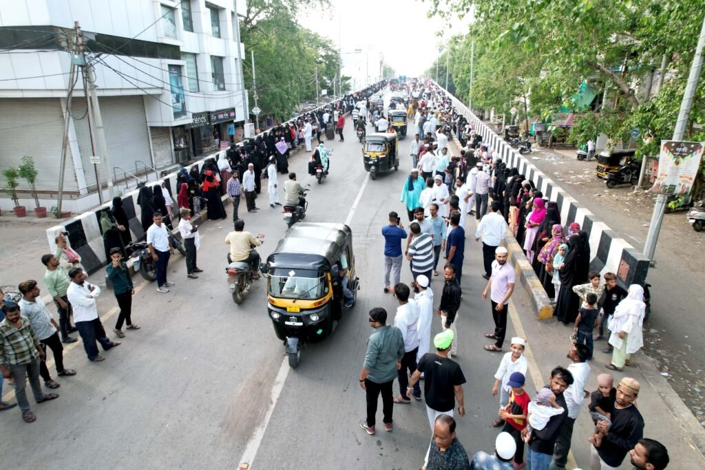 जळगाव शहराच्या मध्यभागी असलेल्या शिवाजी नगर आणि रेल्वे स्टेशन दरम्यान असलेल्या एक किलोमीटर लांबीच्या पुलाच्या दोन्ही बाजूला, म्हणजेच दोन किलोमीटर लांबीच्या मानवी साखळी बनवून सुमारे २५०० महिलांनी वक्फ कायद्याविरुद्ध आपला निषेध नोंदवला.