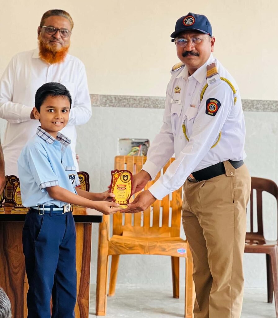 ट्रॅफिक हवालदार श्री. आबा वाघ व हवालदार श्री. शिरसाठ यांनी पालकांना व विद्यार्थ्यांना वाहतूक नियमांचे पालन करण्याचे महत्त्व समजावून सांगितले.