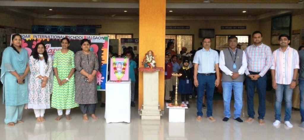 या प्रसंगाचे औचित्य साधून पोदार इंटरनॅशनल स्कूलचे प्राचार्य श्री.गोकुळ महाजन यांनी श्री सरस्वती पूजन करून स्त्री शिक्षणाच्या प्रणेत्या सावित्रीबाई फुले यांच्या प्रतिमेस पुष्पहार अर्पण केला.