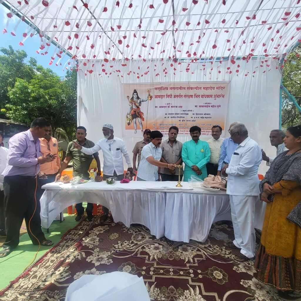 च्या संरक्षण भिंती साठी पत्रकार महेश घुगे यांच्या नेत्तुत्वा खाली सदाशिव नगरातील नागरिकांनी आमदार फारूक शाह यांच्या कडे एका लेखी निवेदनाद्वारे मागणी केली होती नागरिकांच्या मागणीला तत्काळ प्रतिसाद देत आमदार फारूक शाह यांनी आपल्या आमदार स्थानिक निधीतून या सरंक्षक भिंती साठी निधी मंजूर केला होता . गुढी पाडव्याच्या शुभ मुहर्तावर समई प्रज्वलित करून आमदार फारूक शाह यांच्या हस्ते या कामाचे शुभारंभ करण्यात आले धुळे शहरातील वेगवेगळ्या भागातील रस्ते,गटार,पुल व पाण्याचे पाईप लाईन संदर्भातील मुलभूत सुविधांसाठी आमदार फारुख शाह यांच्या प्रयत्नाने कोणताही भेदभाव न करता निधी उपलब्ध केला जात आहे. आजपर्यंतच्या आमदारांच्या कार्यकाळातील कामाचे व आमदार फारुख शाह यांच्या कार्यकाळातील कामाचे मूल्यमापन केल्यास आमदार फारुख शाह यांचे काम वरचढ होताना दिसत आहे. देवपुरातील सदाशिव नगर येथील संकल्पित महादेव मंदिराच्या संरक्षण भिंतीचे कामाच्या शुभारंभाचा वेळेस महेश बाबा घुगे, नगरसेवक नंदु सोनार,गनी डॉलर, डॉ.जगदीश गिंदोडीया, डॉ.दीपश्री नाईक, इंजि.पराग अहिरे,कार्यकारी अभियंता ओस्तवाल, ह.भ.प. महेंद्र महाराज, निजाम सय्यद, प्यारेलाल पिंजारी, एकबाल शाह, शहजाद मन्सुरी, आसिफ शाह, सुलेमान मलिक, ताराचंद माळी, शामकांत पवार, शिवाजी देवांग, इंदुबाई माळी, जितु शिंदे, उमाताई घुगे, रजनी देशमुख, छाया सोनावणे, छाया कासार, लक्ष्मीकांत गीते, मिलिंद देशमुख, दिपक बेडसे, संदीप माळी, योगेश कासार, मिलिंद भामरे, सुहास ओगले व परिसरातील शेकडो नागरिक उपस्थित होते.
