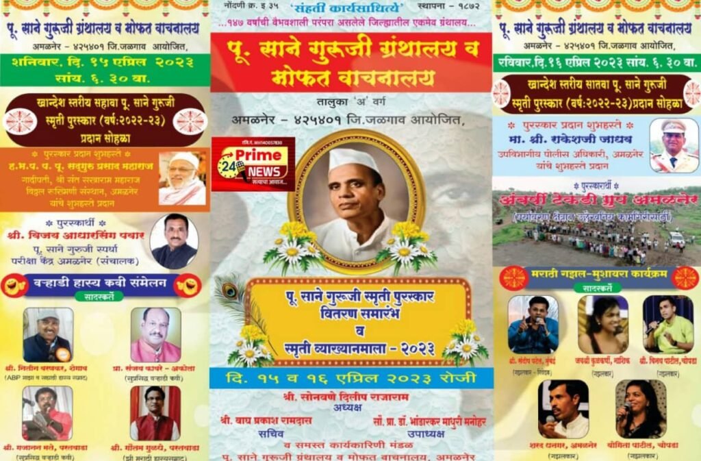 अमळनेर ( प्रतिनिधि) अमळनेर शहरातील साने गुरुजी ग्रंथालय व मोफत वाचनालयातर्फे दिनांक 15 व 16 एप्रिल रोजी दोन दिवशीय स्मृती