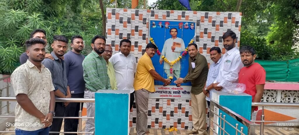 अमळनेर (प्रतिनिधि) संयुक्त महाराष्ट्र चळवळीतील आग्रगण्य नेते, लोकशाहीर साहित्यिक अण्णाभाऊ साठे यांच्या ५४ व्या पुण्यतिथी निमित्त दि १८ रोजी मंगळवारी येथील अण्णाभाऊ साठे यांच्या स्मारकास अभिवादन करण्यात आले. यावेळी समाजबांधव, कलाकार तसेच