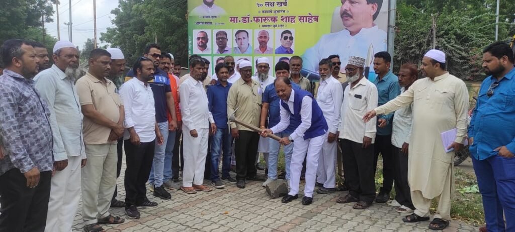 धुळे व जिल्हा साठी आमदार साहेबांनी आणलेला आहे त्याचाच एक भाग म्हणून देवपूर ईदगाह मैदानाच्या कुंपण भिंत व सुशोभीकरणासाठी आणि पेविंग ब्लॉक बसवण्याच्या 50 लाख रुपये कामाचे शुभारंभ आज आ.फारुख शाहयांचे शुभ हस्ते करण्यात आला. धुळे जिल्ह्यातील आर्वी सोनगीर ,बाळापुर, वडणे ,नकाने ,मेहरगाव तसेच आई एकवीरा देवी मंदिर जलाराम बाप्पा मंदिर यासाठी आ.फारुख शाहयांनी विशेष प्रयत्न करून धार्मिक स्थळांच्या विकास केला व तिथल्या मूलभूत सुविधा पुरविण्या कामी शासनाकडून भरघोस निधी नागरिकांसाठी उपलब्ध करून दिला आहे. आजच्या परिस्थितीत धुळे शहरातील विकासांबरोबर शहराच्या सुशोभीकरण असो धार्मिक स्थळांच्या विकास असो आणि शासनाच्या विविध कार्यालयांच्या उभारणीसाठी आ.फारुख शाह यांनी शासनाकडून शेकडो कोटी रुपयांचा निधी आज शहरासाठी उपलब्ध करून दिलेला आहे. सर्वांना समान न्याय देण्याची भूमिका आ.फारुख शाह यांची राहिलेली आहे व राहणार आहे त्या अंतर्गत हा देवपूर ईदगाह मैदान येथे कुंपण भिंत आणि पेविंग ब्लॉक बसवणे कामाच्या शुभारंभ आ.फारुख शाह यांच्या हस्ते करण्यात आले यावेळी या परिसरातील प्रतिष्ठित नागरिक आ.फारुख शाह यांचे सोबत सलीम शाह,नगरसेवक गनी डॉलर,अरिफ पठाण,डॉ. बापूराव पवार कैसर अहमद मौलाना शकील मोहम्मद शाह ,मुक्तार अली, मोहम्मद शेख,छोटू मच्छीवाले आफताब मिर्झा मसूद्दीन काझी जमील पेंटर नुरा ठेकेदार जुबेर मिर्झा आवेश शाह वसीम शेख तबरेज शाह वसीम शेख सय्यद अल्ताफ अली, समीर शहा, सलमान अंसारी ,असद शाह जुबेर शेख, आकीब अली अझहर सय्यद ,आसिफ शाह, शहजाद मांसुरी,शकील शेख,फैसल अन्सारी..